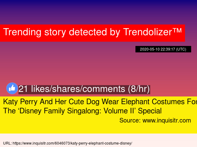 Katy Perry And Her Cute Dog Wear Elephant Costumes For The Disney Family Singalong Volume Ii Special
