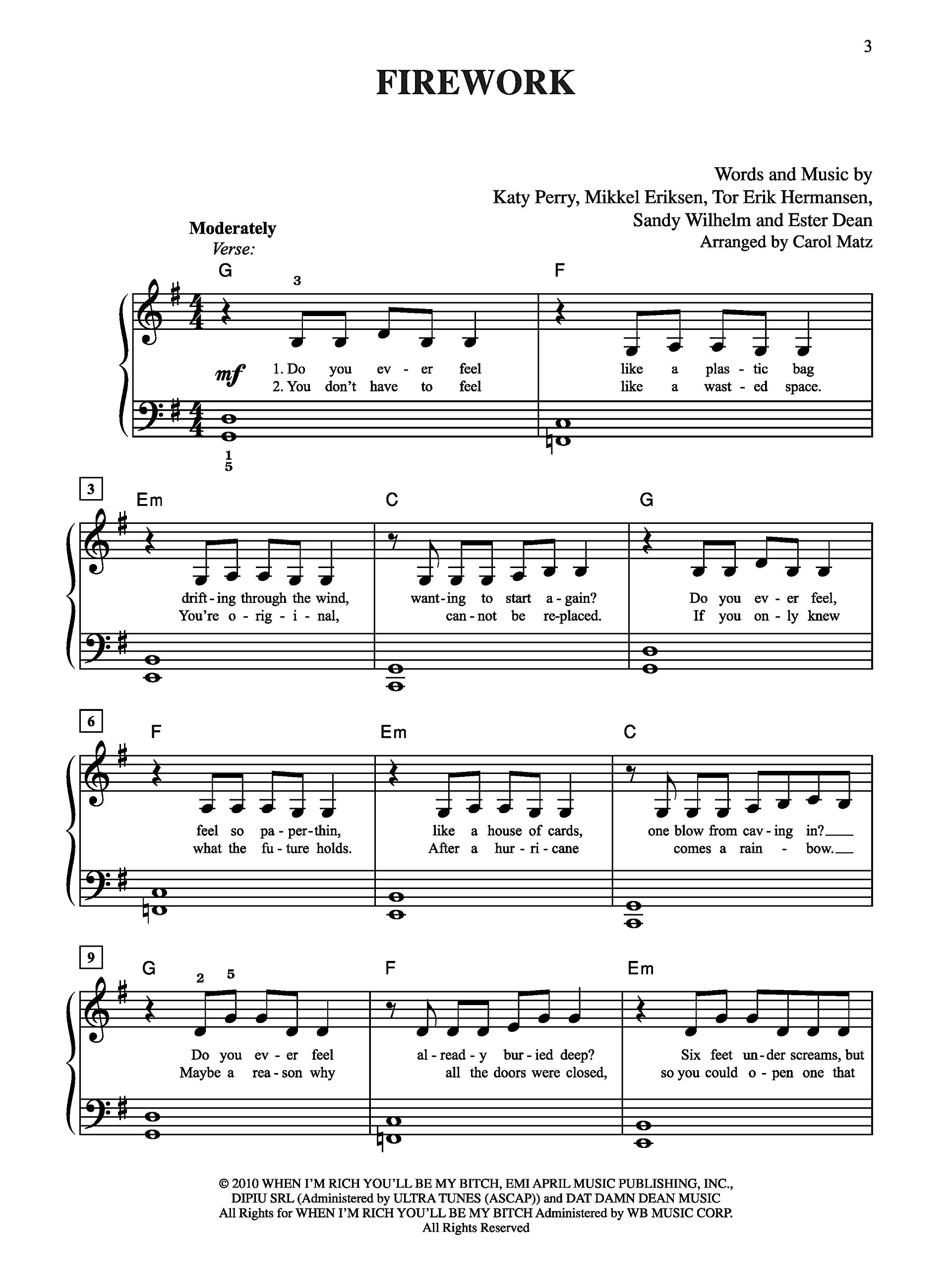 Katy Perry Firework Chords Sheet Music Notes Download Pop E Z Play Today Pdf Print 425988