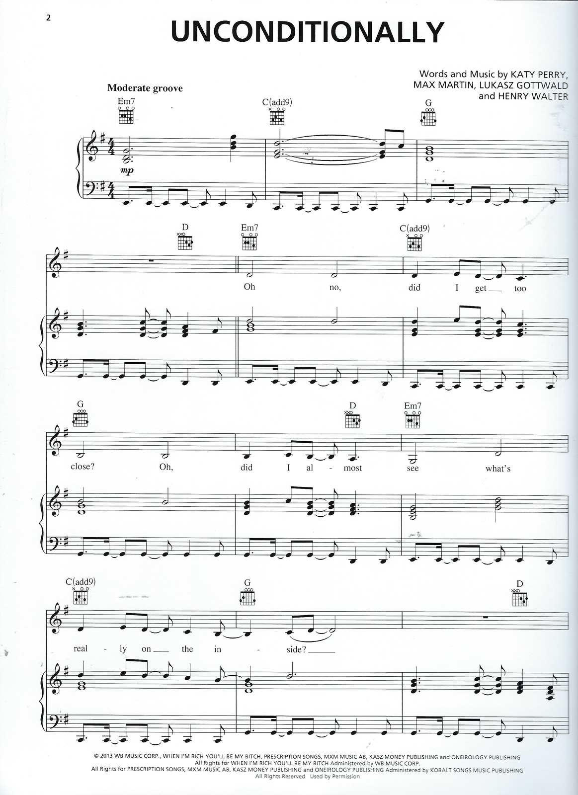 Buy Unconditionally Sheet Music By Katy Perry For Piano Vocal Chords